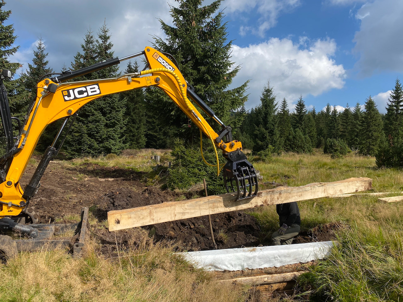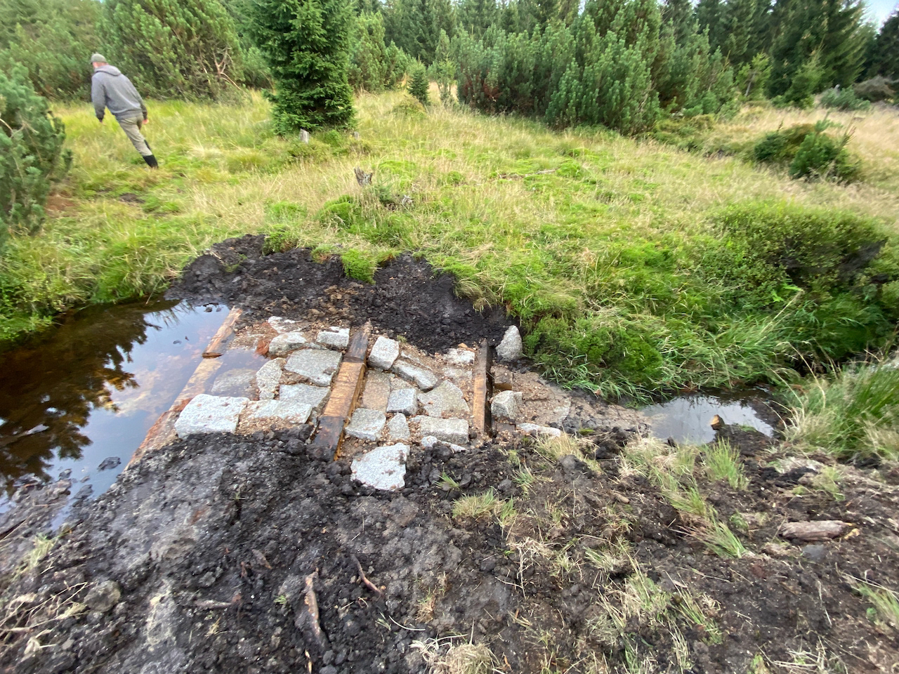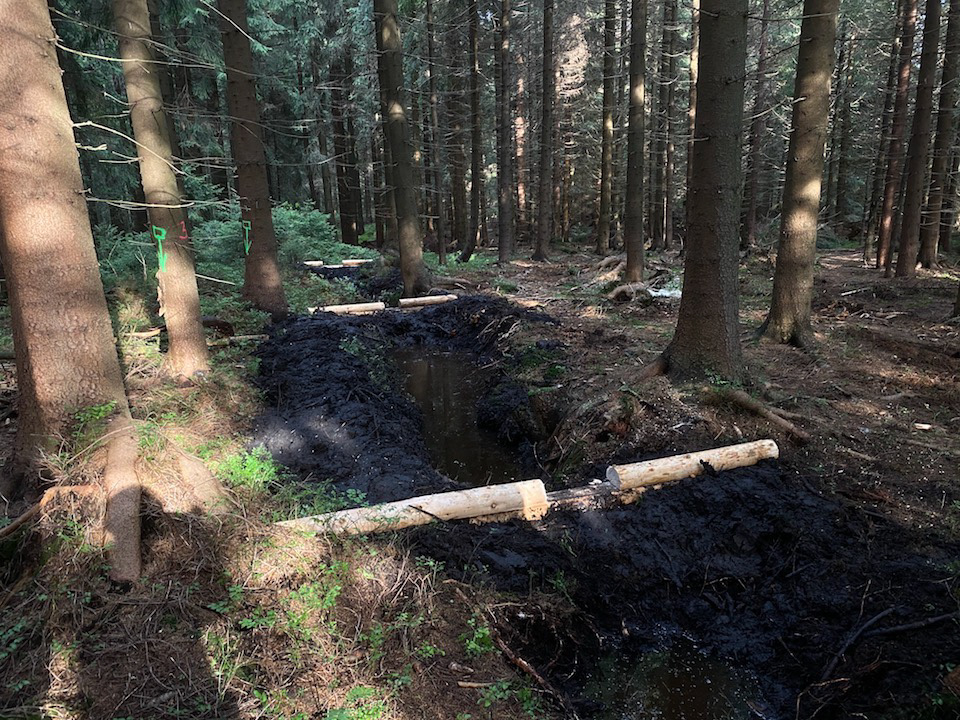 V Jizerských horách jsme stavěli na přítocích Červeného potoka v melioračních kanálech přehrážky pro zadržení vody v krajině.