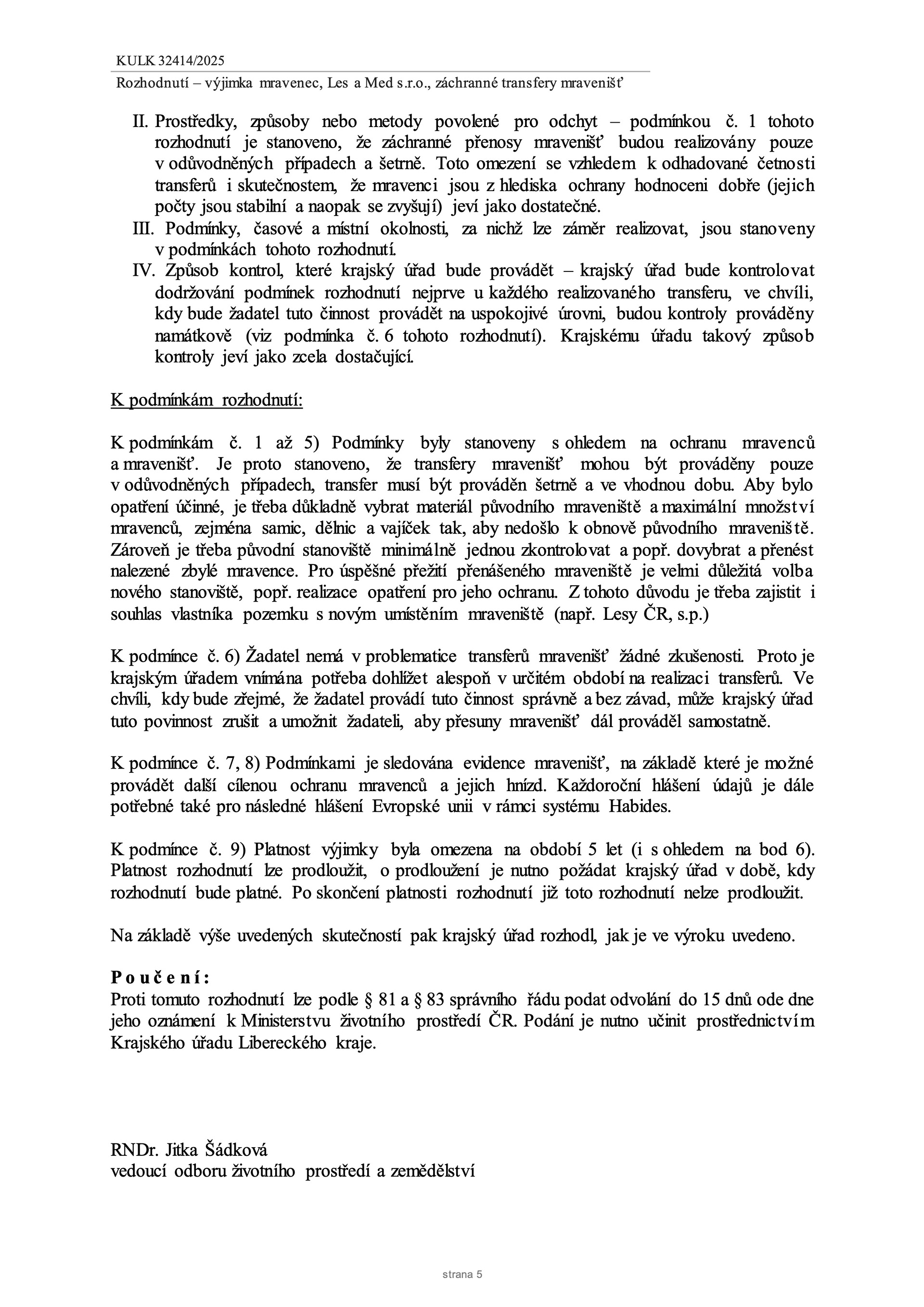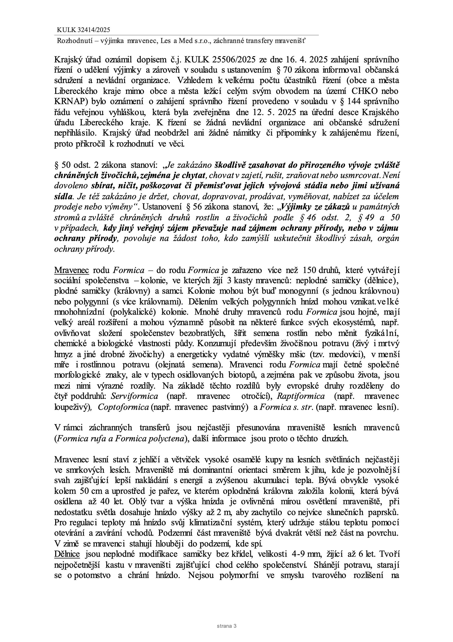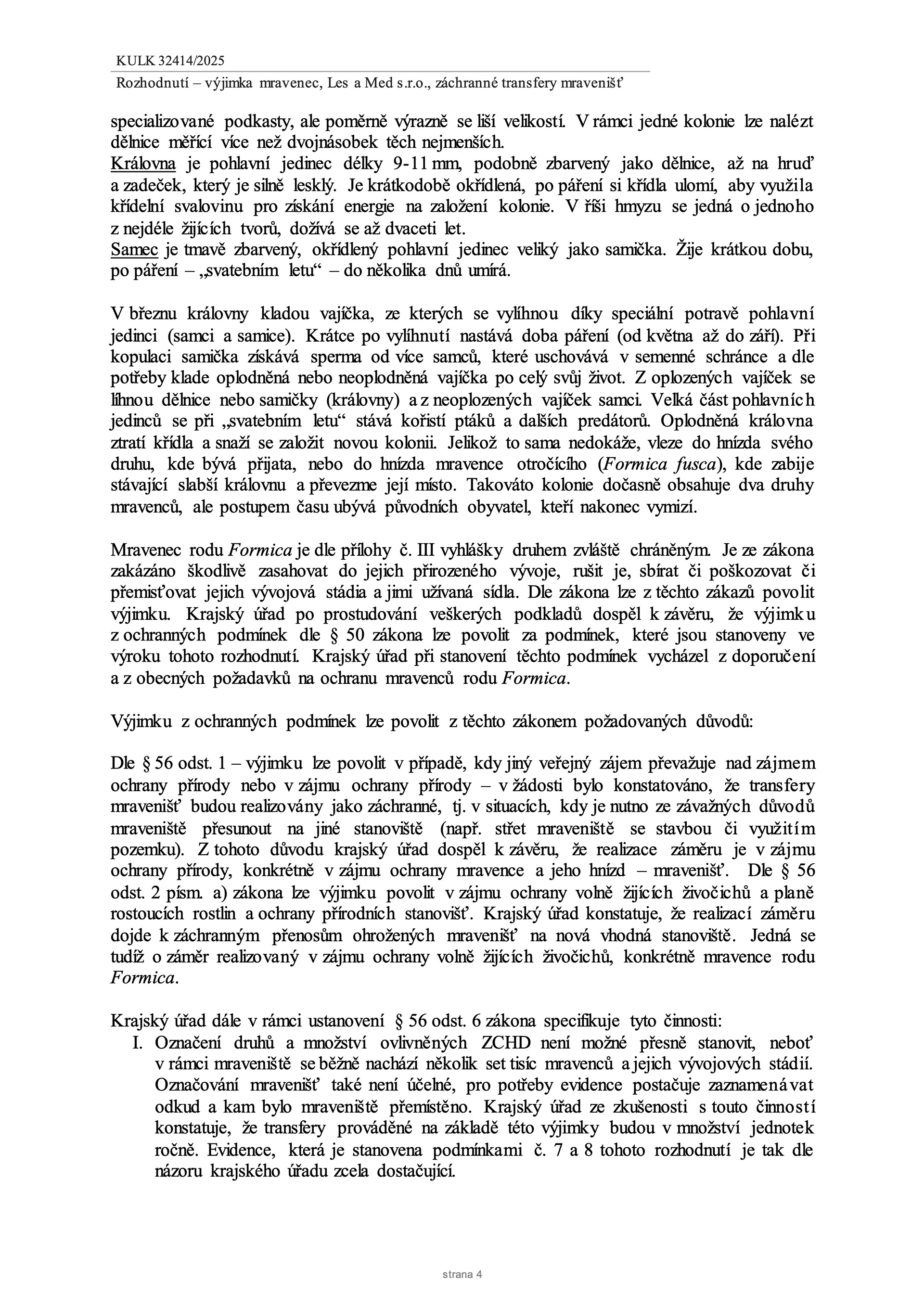 Rozhodnutí o udělení vyjímky k transferům hnízd mravenců